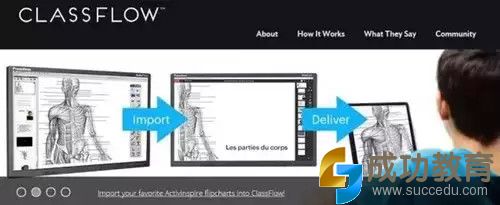 Classflow:一种让教师能够通过多种设备来创建课程、进行互动式授课与评估学生理解的、具有变革性的、基于云的课堂编排工具。通过ClassFlow,教师可以从任何网页浏览器创建和访问互动式课程计划。此外,ClassFlow使教师能够通过将教学平板电脑、智能手机和笔记本电脑等移动设备,连接至课堂显示设备和交互式白板来培养学生的参与性。因此,在最重要的学习时刻,教师可以使用学生的实时反馈来及时调整教学计划。