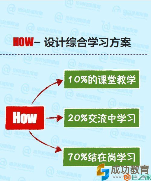 HOW:基于721法则设计综合学习方案,将每一个关键工作任务设计为多个学习任务,确保学习方法的有效性,这是动态学习设计的关键,同时南哥也特别强调动态培训体系并非多个课程的组合,而强调的是基于工作的多个学习任务的组合,以实现一个混合式学习过程解决一个问题的目的。