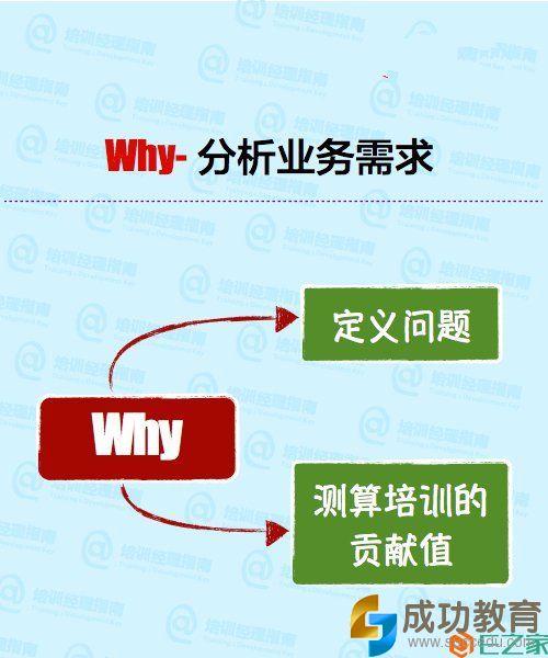 Why:这是一个关于培训决策的问题,在这里是指培训体系的设计者必须时刻关注业务中的绩效瓶颈,及时发现业务中哪些由于能力不足而带来的问题,并保证这个问题值得用培训的方式去解决,在这部分体系的设计需要解决两个问题: