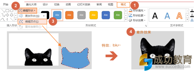 2、选中这个形状,在上方的窗口中选择“格式”,再选择“编辑形状”,再选择“编辑顶点”。