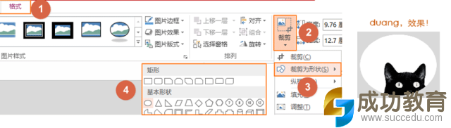 1、插入一个形状。选择“插入”菜单,在弹出的面板中选择“形状”,选择一个与图片主体元素最接近的形状;