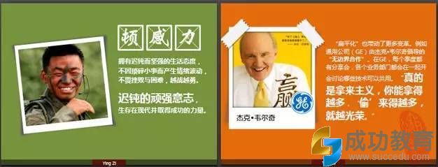 全图型的展示就不罗嗦了,主要是品质高的符合课件主题的图片比较难找。这种主要是以图片为载体,配以文字。这样出来的效果视觉冲击力会比较强。好图难求,多积累吧。如果你对全图型图片展示感兴趣,看看lonelyfish的这篇“ 全图型PPT文字清晰化的优化技巧”讲的很细致。