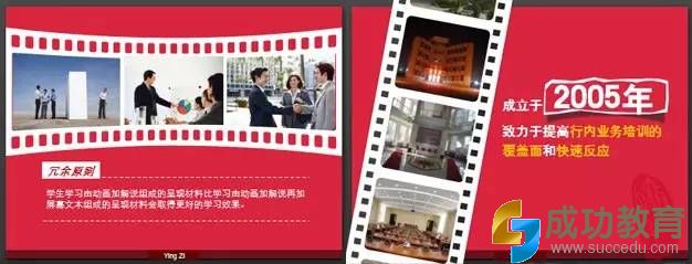 右图:这是给建行定制课件的时候其中的一页,这页是讲建行的历史的,因此选择了胶片的效果,配以曾经的图片。客户觉得蛮神奇的,有时候只要稍微动下脑子,效果完全不一样。