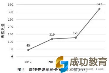 有记录的(615门,98.87%)课程开设时间介于2012年10月11日至2015年9月23日之间(见图2),开课数量呈逐年增长趋势。
