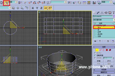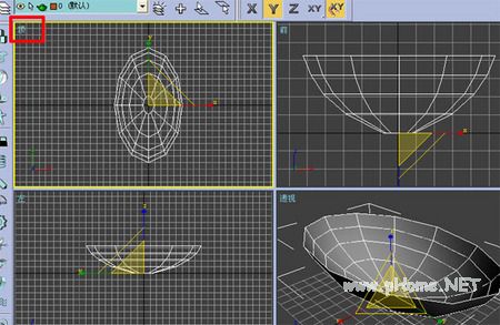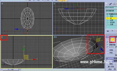 在顶视图继续调~~~2、透视图选边~~左视图结合SHIFT键向右上方拉动