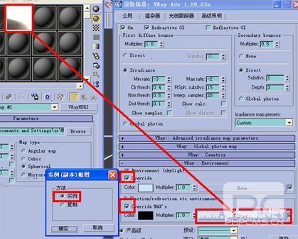 打开环境天光,钩选,把环境贴图拖到折射环境项内,点好,现在开始渲染~~