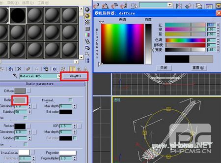 调节反射~~越暗反射越小,给物体材质,另选一材质球,点获取材质按钮,选VRAYNDRI~~