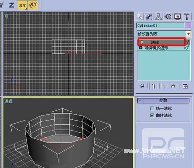 希望大家喜欢,先看效果,还可表现各种不锈钢栏杆~~~!建一圆柱体,转为多边形在面级别,点物体上面删除,给双面材质~~~2、反转法线,再转到多边形在点级别框选下面一排点,用收放工具沿X