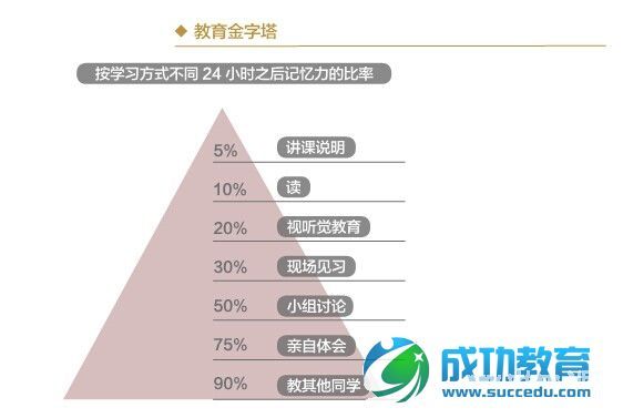 韩国中小学在推行翻转课堂过程中研究发现,学生单纯的通过听、读音在24小时后记忆剩下的比例在10%内,然而,与同学进行小组讨论后对知识的掌握记忆比例占50 % ,教其他同学时占90%。