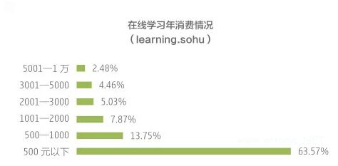 目前来说,在线教育用户付费习惯还在培养中,虽然市场基础已经存在,但是消费习惯还远远没有形成。2014年搜狐教育消费者调查发现,6成多(63%)的网友每年用于在线学习的花费是500元以下,而花费1000元以上的网友仅占2成。以目前趋势来看,形成有规模的在线教育消费市场还需时日。