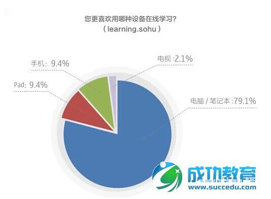 从在线学习的工具来看,用电脑/笔记本的网友依然占据绝大部分(79%),虽然手机和Pad分别不到1成,但近两年各种便捷的学习App的快速发展,都表明移动互联网将会成为未来在线学习的主要手段之一。在线学习已经满足于PC端,谁能占领更多的移动端市场,谁就能占领未来用户的更多学习时间。