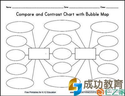 把要比较的事物放在两个方框里,左右两边的圈是这两个事物各自不重合的特征,而当中那排圈就是它们之间的共同特征。